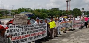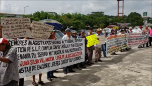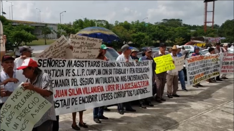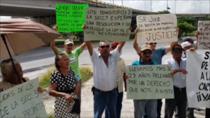 Ex trabajadores petroleros y viudas de este y otros municipios se manifiestan a las afueras de los Juzgados esperando se resuelva el juicio contra el exdirigente del STPRM Juan Silva, que inicio hace más de 26 años.