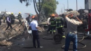 Salió de la autopista para caer sobre viviendas y vehículos. Desalojan a 800, reportan tres heridos; Policía Federal muere atropellado por una pipa que llevaba agua al incendio