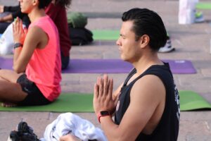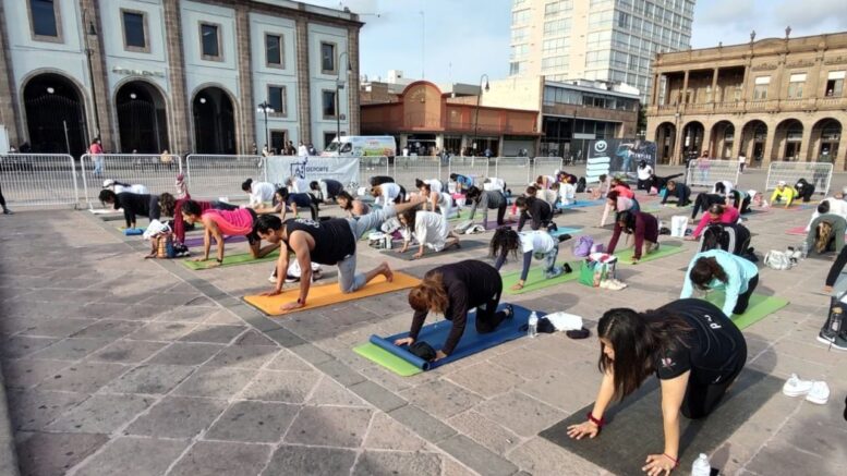 San Luis Potosí.– En el marco del “Día Internacional del Yoga”, este martes se realizó una súper clase en la Plaza de los Fundadores, a cargo de la Dirección de Deporte Municipal. Todas y todos los asistentes disfrutaron de una gran rutina enfocada a la relajación, en favor de una mejor calidad de vida.
