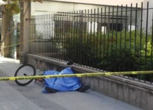 El hombre de entre 50 a 55 años de edad quedó tirado en la banqueta de la calle junto a una bicicleta entre las inmediaciones de la calle tres Guerras.