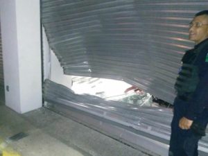 Esta madrugada, la tienda Elektra de Periférico Oriente en Prados de San Vicente fue objeto de un intento de robo, los presuntos delincuentes solo causaron daños en una cortina por fortuna los sensores de alarma se activaron .