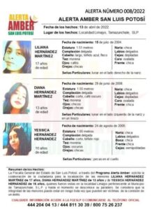 A pesar de que se generó una Alerta Amber desde las primeras horas de su desaparición, las menores no han sido encontradas. Desaparecieron de la localidad de Limajyo, en el municipio huasteco de Tamazunchale.