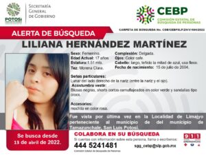De acuerdo a la ficha de Alerta Amber, para cualquier información se pueden comunicar a la Fiscalía a los teléfonos: (444) 204 13, (444) 811 30 39 y al 800 75 26 237