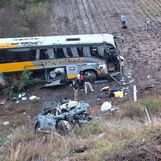 Cerritos, S.L.P. — Una tragedia vial se registró la mañana de este domingo en el kilómetro 94 de la Supercarretera Cerritos–San Luis Potosí, a escasos kilómetros del entronque con la carretera federal 57, donde un autobús de pasajeros y yn vehículo compacto se vieron involucrados en un aparatoso choque.