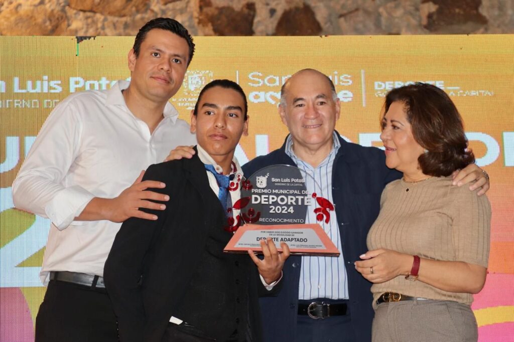 San Luis Potosí.– Los dos atletas potosinos olímpicos participantes en París 2024, Fátima Herrera y Jorge Iga; así como la mejor entrenadora, Lorena Mendoza; el paraatleta, Jesús Gilberto Borrego Lechuga y el mejor deportista profesional, Moisés Gutiérrez; fueron galardonados la tarde de este martes por parte del Presidente Municipal Enrique Galindo Ceballos, en la entrega del Premio Municipal del Deporte 2024.