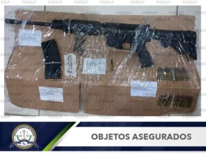 A los detenidos se les aseguraron 2 armas largas tipo AR-15 calibre 5.56 mm y un fusil de asalto calibre 7.62 mm, así como 22 cargadores abastecidos y cerca de 585 cartuchos útiles, entre otros objetos.