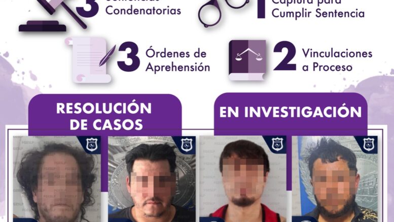FGESLP Logra sentencias condenatorias, dos vinculaciones a proceso y tres ordenes de aprehensión contra feminicidas