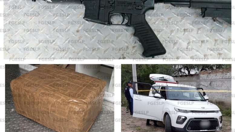 SANTA MARÍA DEL RIO. – La Fiscalía General del Estado (FGESLP) a través de trabajos de investigación realizados por elementos de la Dirección General de Métodos de Investigación, lograron la detención en flagrancia de tres personas, además del aseguramiento de dos vehículos, droga, armas de alto calibre y cargadores abastecidos.