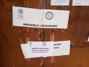 Los sellos de aseguramiento del inmueble detallan que se encuentra bajo investigación dentro de la carpeta FED/SLP/SLP/0000846/2021, iniciada por la Fiscalía General de la República. Tras el aseguramiento de los vehículos los sellos fueron pegados nuevamente a la entrada del inmueble.