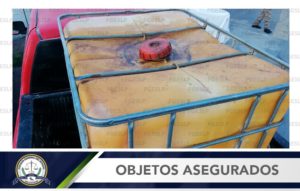 Al confirmar la existencia de un contenedor de plástico en la caja de la unidad, que en su interior contenía un líquido con las características semejantes al diésel, cuestionaron al sujeto identificado como Javier Isaí “N” sobre el origen de la sustancia, sin embargo, no acreditó su permiso para transportarla.