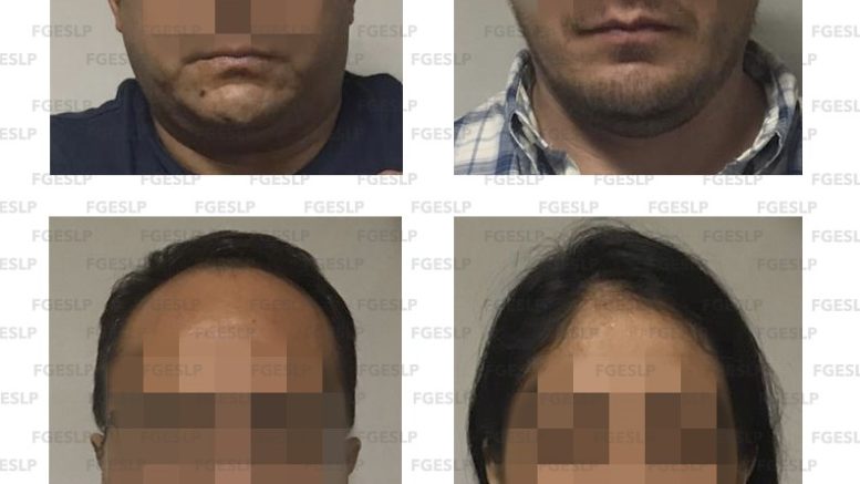 SLP. – La Fiscalía General del Estado de San Luis Potosí (FGESLP) a través de agentes de la Policía de Investigación (PDI) cumplimentó una orden de aprehensión en contra de tres hombres y una mujer por su probable responsabilidad en el delito de robo calificado, hecho cometido en un banco ubicado en avenida Carranza de la ciudad Capital.