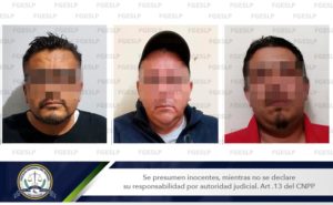 SLP. – Tres hombres fueron capturados por agentes de la Policía de Investigación (PDI) por su presunta responsabilidad en el delito de robo calificado en agravio de una empresa cigarrera, hecho ocurrido hace unos días en la ciudad Capital, informó la Fiscalía General del Estado de San Luis Potosí (FGESLP).