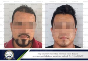 RIOVERDE. – La Fiscalía General del Estado de San Luis Potosí (FGESLP) por medio de su personal operativo en zona Media, realizó la detención de dos sujetos, de 38 años y 34 años de edad, señalados de privar de la vida a un hombre en Rioverde.