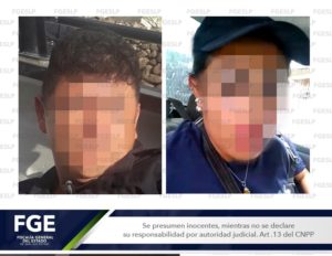 RIOVERDE. – Personal de la Fiscalía General del Estado de San Luis Potosí (FGESLP) adscrito a la zona Media, obtuvo la vinculación a proceso de un policía estatal en activo y una mujer que lo acompañaba, por el delito de intento de extorsión en Rioverde; además ella enfrenta cargos por usurpación de funciones públicas y de profesión por uso indebido de condecoraciones o uniformes, al hacerse pasar por una agente ministerial.