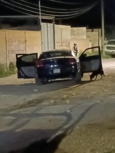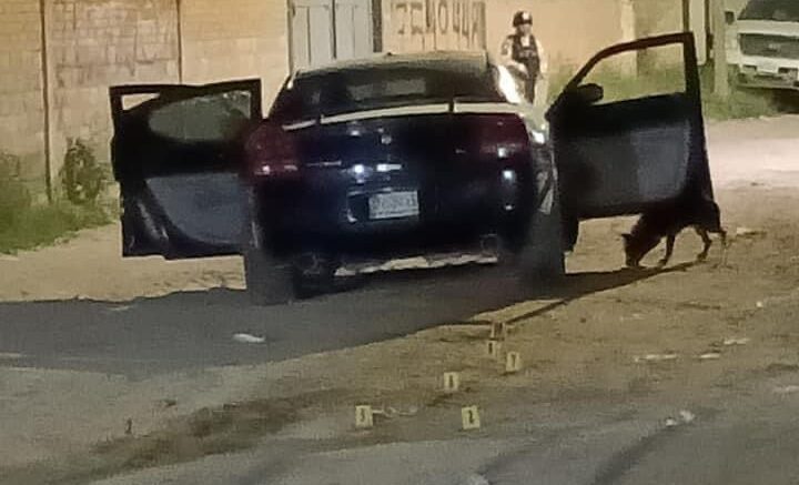 En ese sitio fue localizado un automóvil Dodge Charger que presentaba orificios por arma de fuego y varios elementos balísticos, esto sobre la calle Emiliano Zapata.