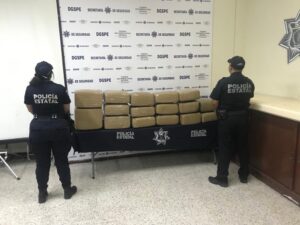 SAN LUIS POTOSÍ, SLP.- Como resultado de los operativos de seguridad, realizados por agentes de Fuerza Metropolitana Estatal (FME), se llevó a cabo el aseguramiento de un vehículo que contenía 104 kilogramos de marihuana, en el Boulevard Manuel Gómez Morín.