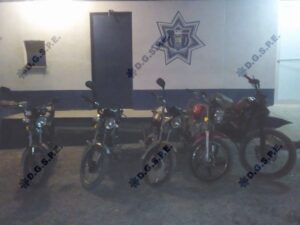 A los sujetos se les aseguraron cinco motocicletas de la marca Italika modelos 2013, 2020 y 2021, una maleta con equipo táctico, dos camionetas y tres celulares.