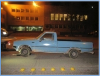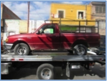Sobre calle Precursores de la Revolución, en la colonia Juan Sarabia; se aseguró una camioneta Chrysler, tipo Pick-Up, color azul, sin placas de identificación. El automóvil se encontró sin autoestéreo y con daños en la carrocería.