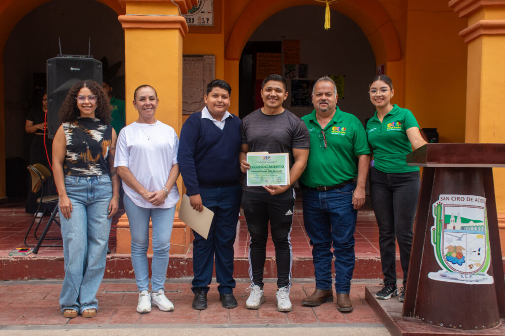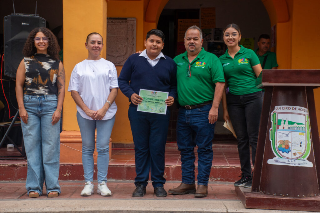 San Ciro de Acosta, S.L.P.- El talento, la disciplina y el esfuerzo juvenil fueron los grandes protagonistas en una emotiva ceremonia organizada por el H. Ayuntamiento de San Ciro de Acosta 2024-2027. La administración, a cargo del C.P. Luis Carlos Pereyra Govea, a través de su Departamento de Deportes, llevó a cabo la entrega de un merecido reconocimiento al alumno Jaime Méndez Mancilla, un joven atleta que ha puesto en alto el nombre de su municipio y de todo el estado.