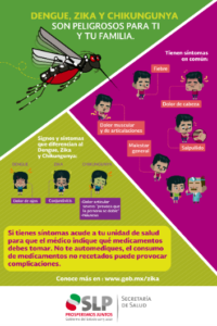 Debido a las recientes lluvias que se presentan en la entidad, la secretaría de Salud del Gobierno del Estado fortalece las acciones de difusión de medidas preventivas para evitar enfermedades como Dengue, Zika y Chikungunya, por la proliferación de encharcamientos que crear criaderos de mosquitos, transmisores de esas enfermedades.