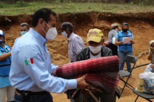 En el mismo acto efectuado se realizó la entrega de despensas, como medida de apoyo ante la actual contingencia sanitaria del Covid19, además de cobijas a las personas adultas mayores, cubre bocas, y juguetes para los niños.