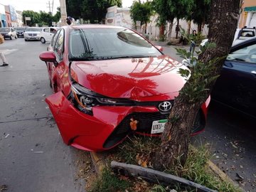 El accidente ocurrió a la altura de la calle Aquiles Serdán, donde se impactaron dos vehículos, entre ellos un Toyota color rojo, que tras el choque con un vehículo del mismo color, se impactó contra un poste.