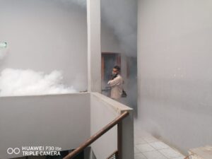 Este martes, personal de la Secretaría de Salud realizó la fumigación de las instalaciones de la Jefatura de Región de la SSPE zona Huasteca, como parte de las acciones contra el mosco transmisor del dengue que realiza el personal de salud.