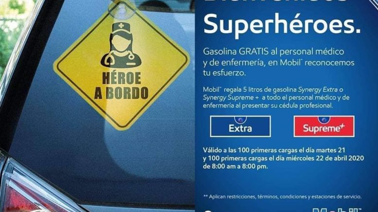 Las estaciones de servicio de gasolina “Mobil” lanzaron una innovadora iniciativa de regalar litros de combustible al personal médico y de enfermería que presente su cédula profesional.