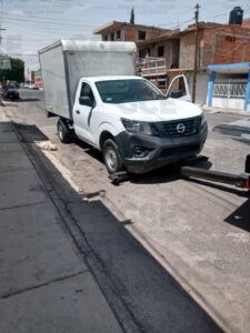 También en la zona industrial, elementos estatales localizaron una camioneta marca Nissan, tipo NP300, color blanco, modelo 2019, sin placas de identificación, la cual contaba con reporte de robo de la colonia Los Reyitos.