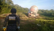 División de Gendarmería localizó un auto-tanque con aproximadamente 24 mil litros de hidrocarburo sustraídos de una toma clandestina en el municipio de Altamira, Tamaulipas.
