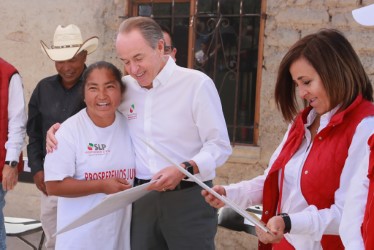 Cedral, S.L.P.- En gira de trabajo por este municipio del Altiplano potosino, el Gobernador del Estado Juan Manuel Carreras López, entregó obras de infraestructura carretera, educativa, vialidades, apoyos para vivienda y a migrantes, con una inversión 28 millones de pesos, que impulsan una política social integral para que en San Luis Potosí prosperemos juntos.