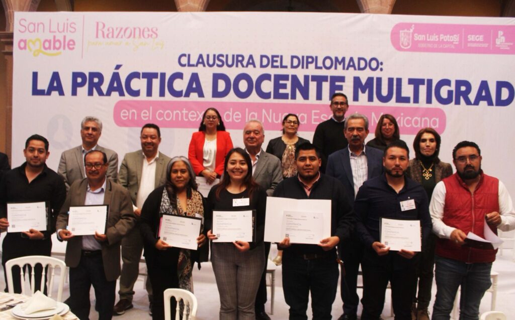 Con gran éxito se llevó a cabo la clausura del Diplomado “La Práctica Docente Multigrado en el Contexto de la Nueva Escuela Mexicana”, impartido por la Universidad Pedagógica Nacional (UPN) a maestras y maestros del Sistema Educativo Municipal. Este proceso formativo, iniciado en agosto por iniciativa del Alcalde Enrique Galindo Ceballos, fortaleció las capacidades docentes para atender aulas multigrado y mejorar la calidad educativa en las escuelas municipales.
