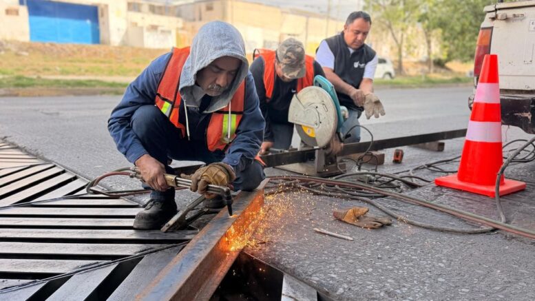 • Personal de Obras Públicas del Ayuntamiento realizó trabajos de herrería en la rejillas ubicadas entre los puentes 20 de Noviembre y Eje Vial.