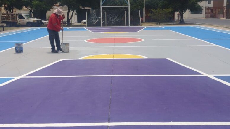 La Coordinación de Imagen Urbana realizó trabajos de pintado y mantenimiento en las canchas deportivas de la avenida Papagayos, con el objetivo de ofrecer espacios dignos y seguros para la práctica del deporte, especialmente para jóvenes de la zona.