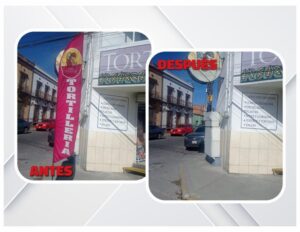 *Además, se retiran anuncios sin permiso que obstruyen el libre paso y dañan la infraestructura urbana.