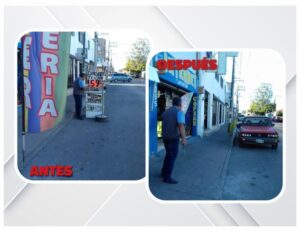 Esta revisión se centra en establecimientos que invaden banquetas y el arroyo vehicular con mercancías, anuncios, toldos y diversos objetos que obstruyen el paso y ponen en riesgo la integridad de quienes transitan por la zona.