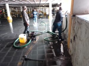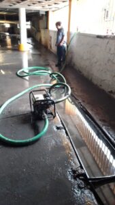 La cuadrilla de trabajadores municipales requirió en un principio de una motobomba de 2 pulgadas. Sin embargo, para acelerar la tarea, se utilizó de igual manera otra motobomba denominada “sacasólidos” de una medida de 6 pulgadas de diámetro, para desalojar por completo el agua y lo que permitió recuperar el servicio de estacionamiento en el Mercado República.