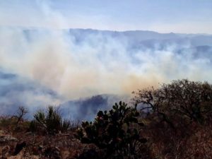 “No hay ningún riesgo para la población, el Gobierno del Estado tomó las medidas preventivas necesarias como fue el ataque externo a la zona siniestrada, se verificaron las brechas corta fuego y se solicitó a la Comisión Federal de Electricidad (CFE) mantenimiento a las torres de acero galvanizado que cruzan por esa área para evitar su debilitamiento”.