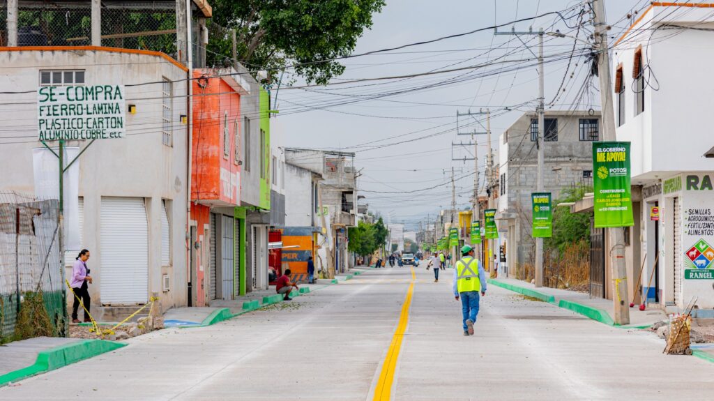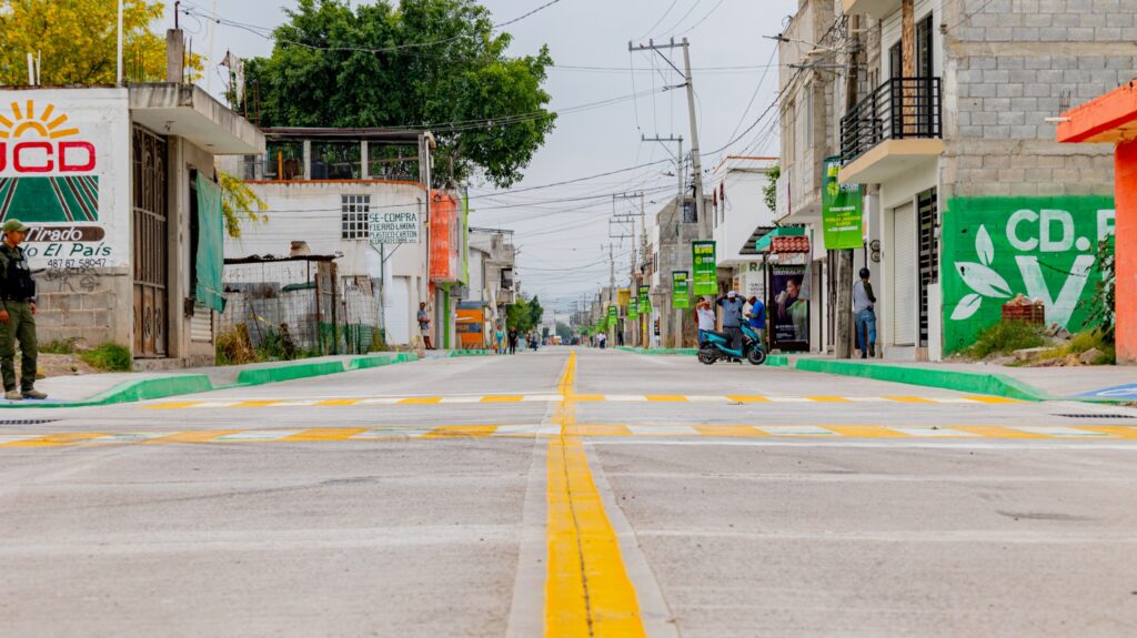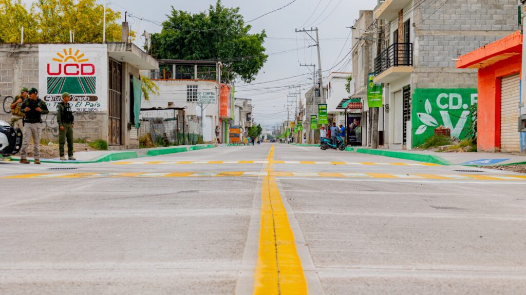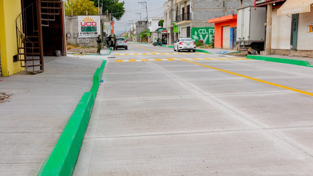 La rehabilitación de esta vialidad incluyó la construcción de guarniciones, banquetas, redes de agua potable, drenaje y la colocación de pavimento de concreto hidráulico, asegurando una mayor durabilidad y seguridad para peatones y automovilistas.