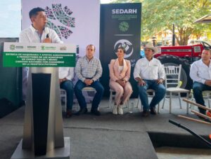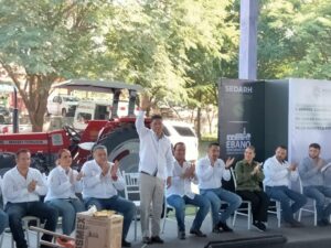 El Jefe del Ejecutivo Estatal hizo un recuento de lo entregado al campo en este año, que asciende a más de 105 tractores, miles de remolques para el transporte del ganado, equipos de fumigación, cintilla para los sistemas de riego, apoyos que suman más de 300 millones de pesos.