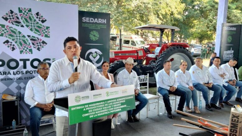 Ciudad Valles, San Luis Potosí.- La transformación y la visión de futuro para recuperar al sector agropecuario es una realidad gracias al apoyo que brinda el Gobierno del cambio que encabeza Ricardo Gallardo Cardona, quien entregó paquetes de tractores, equipos e implementos para el campo con una inversión de más de 15.5 millones de pesos, a más de 348 productores de la Huasteca y donde refrendó su compromiso por sacar del atraso y el abandono a este sector a favor del desarrollo y crecimiento de la economía.
