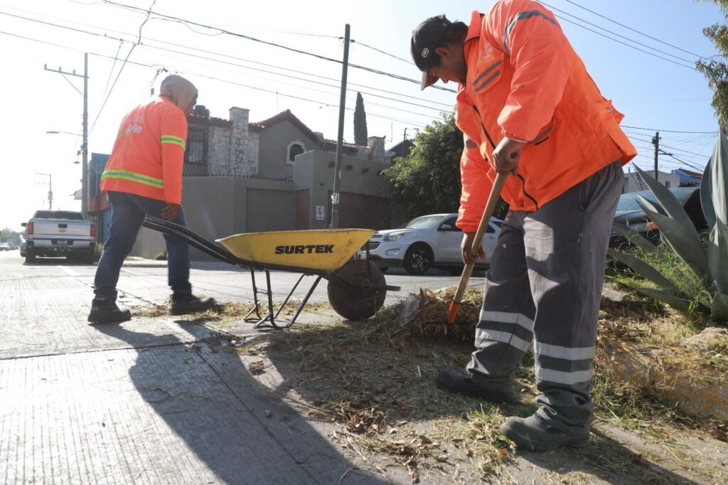 El Director de Servicios Municipales, Christian Azuara, organizó varias cuadrillas para trabajar en el camellón de las avenidas Malaquita, Circonio y Esmeralda, desde el bulevar Río Españita a Avenida Industrias; así como en las áreas verdes de Coral, Topacio y Pómex.