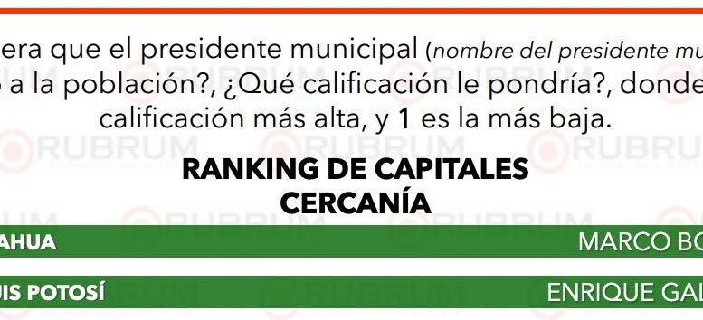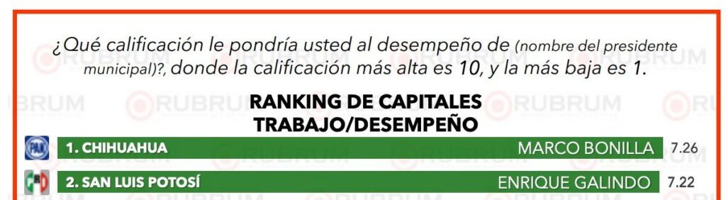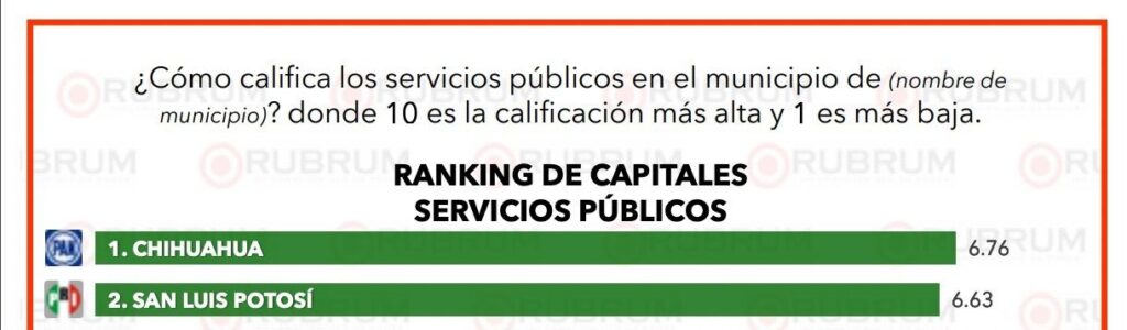 - En la evaluación de la encuestadora Rubrum del primer mes del año, el Ayuntamiento de San Luis Potosí se colocó en segundo lugar entre las ciudades capitales del país en desempeño, servicios públicos y cercanía con la población.