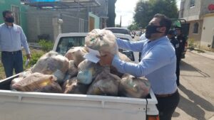 Con el objeto de seguir apoyando a la población en general, ante la pandemia del Coronavirus por la que se atraviesa; las autoridades municipales pusieron en marcha una intensa campaña de entrega de apoyos alimentarios; iniciando esta mañana en las colonias del sector oriente de la cabecera, en donde se repartieron un promedio de 700 despensas, conteniendo artículos de la canasta básica, mismas que son adquiridas con recursos propios del Municipio.