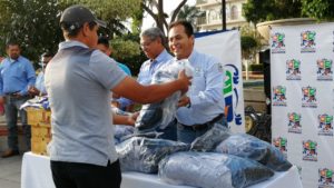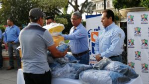 De esta manera se realizó la entrega de 142 paquetes, conformados cada uno de ellos por 4 pantalones de mezclilla, 4 camisolas de mezclilla, 4 playeras, 2 pares de zapatos de trabajo, 2 botas de hule (según corresponda a la actividad), 2 fajas (según corresponda la actividad) y 2 impermeables.