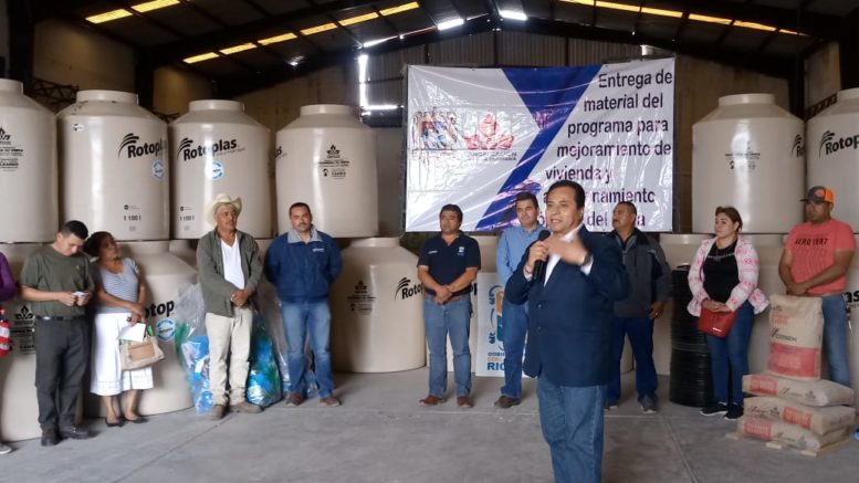 Con la intención de seguir apoyando a familias de diferentes comunidades del municipio, sobre todo para que durante la temporada de intenso calor que se avecina puedan contar con los medios que les permitan el almacenamiento de agua; las autoridades municipales llevaron a cabo el día de hoy la entrega de tinacos, dentro del programa de Mejoramiento de Vivienda y Almacenamiento de Agua, que lleva a cabo la Congregación Mariana Trinitaria.