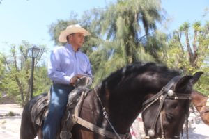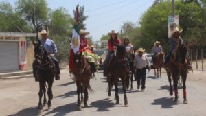 Previamente a su llegada a esta comunidad, el Presidente Municipal, Ramón Torres García, tomó parte en una larga caravana de jinetes, mismos que después de realizar un recorrido por las diferentes calles arribaron hasta la Iglesia de la Divina Pastora, en donde se celebró una homilía.