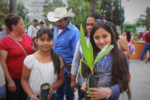 Entre las plantas que se repartieron se encontraban palma abanico, mezquite, lluvia de oro, parota, trueno, fresno y casuarina, entre otras especies.