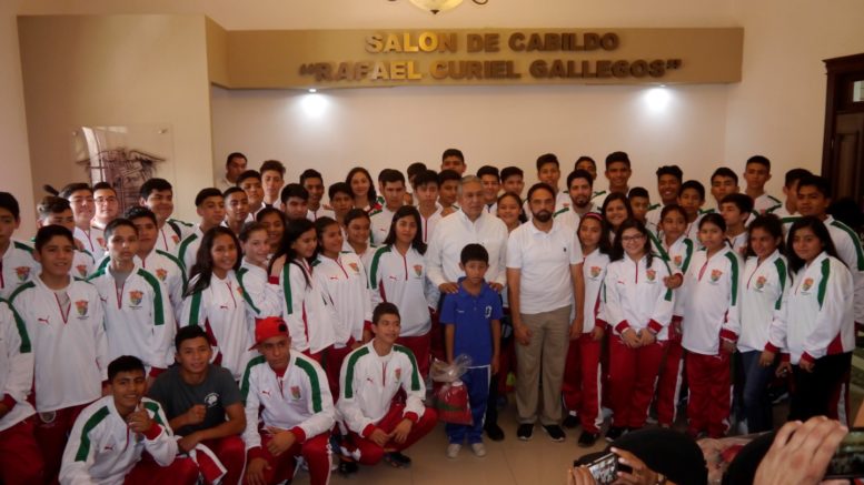 La entrega de los uniformes fue realizada esta mañana al interior del salón de Cabildo “Rafael Curiel Gallegos”, con la presencia del alcalde Jorge Terán Juárez, del Director de Cultura Física y Deporte Miguel Jiménez Lárraga.
