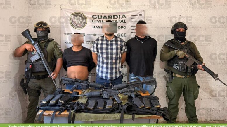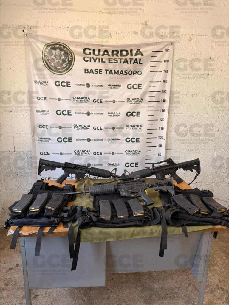 Los tres señalados, junto con el armamento y el vehículo confiscado, fueron puestos a disposición de la Fiscalía General de la República (FGR), delegación San Luis Potosí, donde se determinará su situación jurídica en las próximas horas.